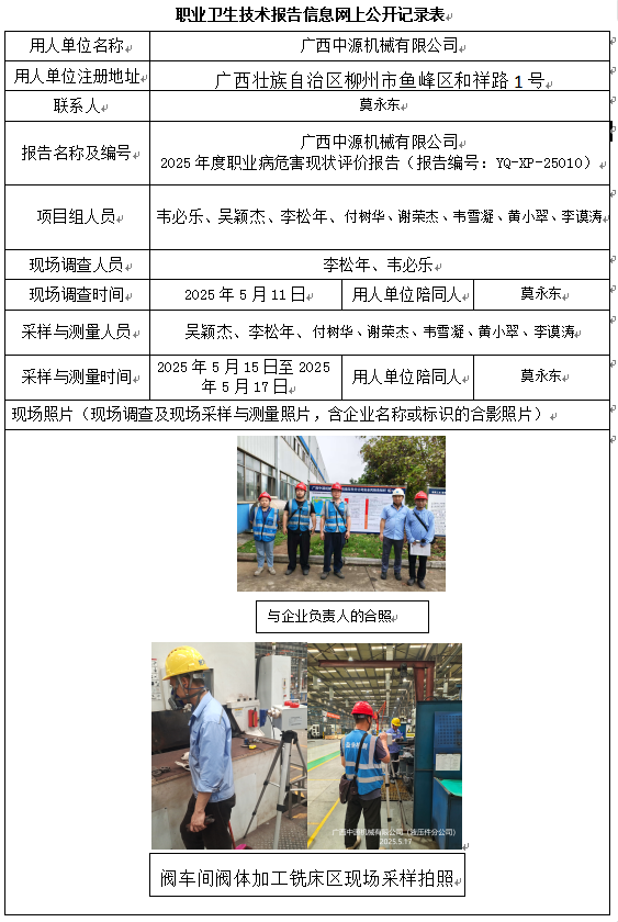 廣西中源機械有限公司2025年度職業(yè)病危害現(xiàn)狀評價報告