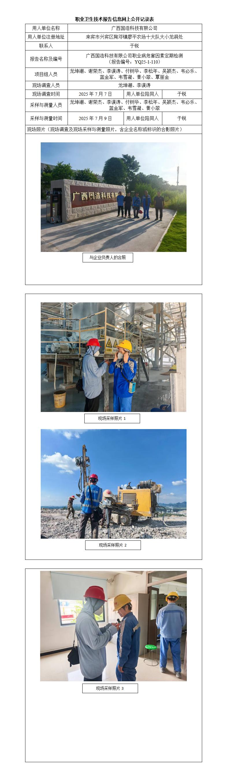 廣西國浩科技有限公司職業(yè)病危害因素定期檢測報告