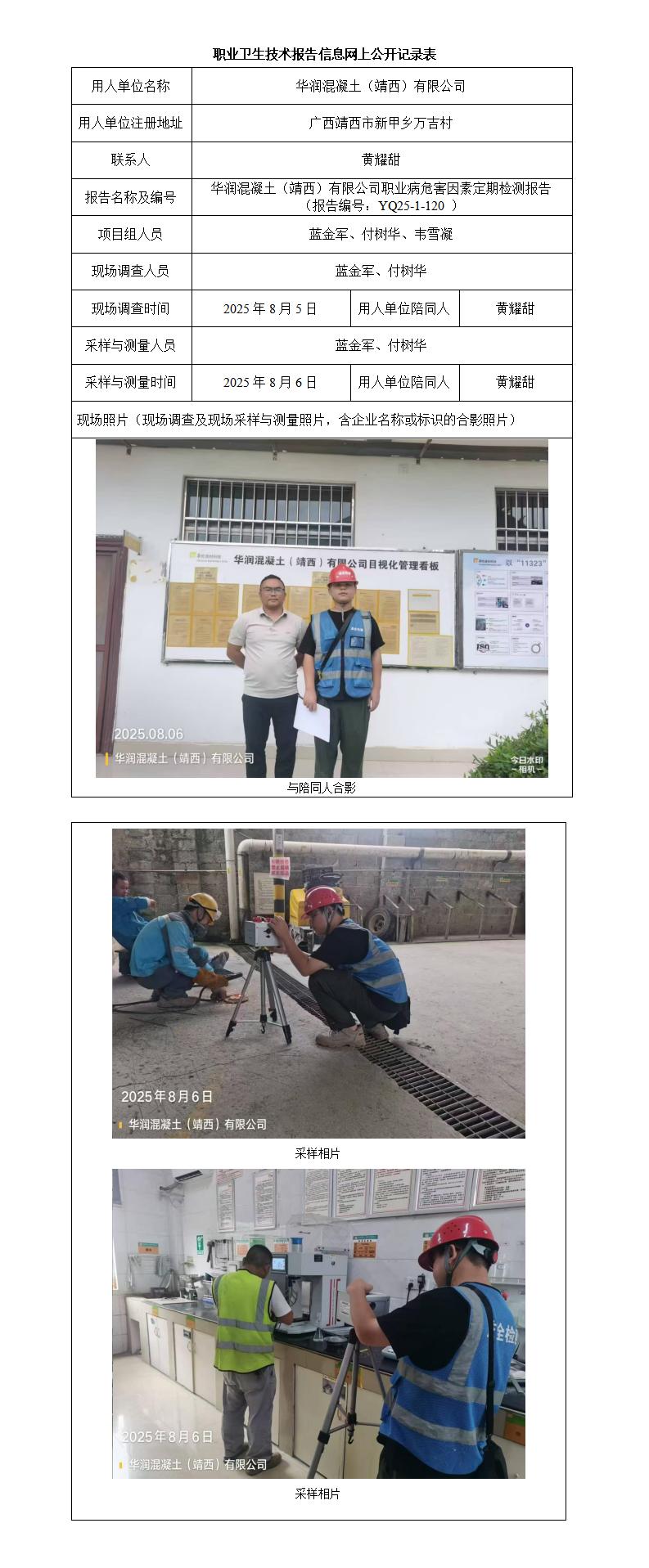 華潤混凝土(靖西)有限公司職業(yè)病危害因素定期檢測報告信息網(wǎng)上公開記錄表